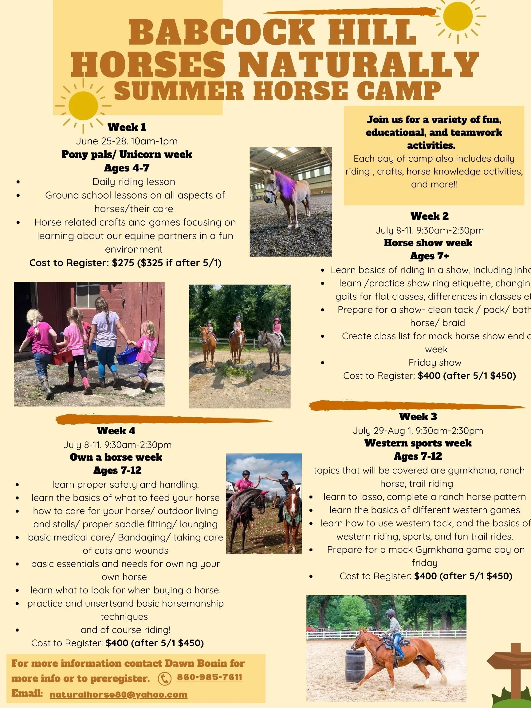 Contact Dawn Bonin 860-985-7611 or naturalhorse80@yahoo.com for more info or to preregister.